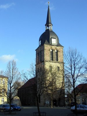 Der Altar ist aus Holz, auf ihm stehen die beim Brand von 1700 geretteten Altarleuchter aus Messing. Die alten Glocken wurden in Isernhagen (in der Calvörder Feldmark) zu neuen Glocken umgegossen. 1702 wurde ein Turmuhr angeschafft. Erst 1729 wurde ein Turm mit 6 Fuß dickem Mauerwerk errichtet, dessen Höhe sich auf 68 Fuß belief. 1742 wurde eine neue Orgel eingebaut.